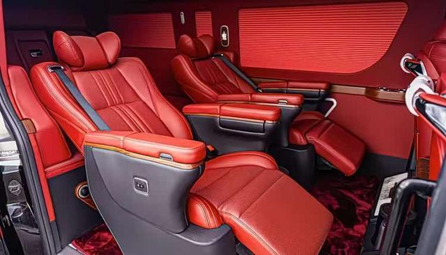 中排腿部空间达1200mm,而埃尔法约为850mm,如此宽敞的腿部空间使得海狮6座版能够轻松容纳带电动腿托的“零重力航空座椅”,为乘客提供了极致的舒适体验。当第三排座椅放倒后,后备箱容积扩展至1800L,而埃尔法仅为580L,这一巨大的差距能够充分满足商务行李以及高尔夫球包等物品的存放需求。
